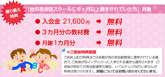 保護者の皆様に安心して英会話スクールを選んでいただけるように費用面でも以下のサポートを実施しております。